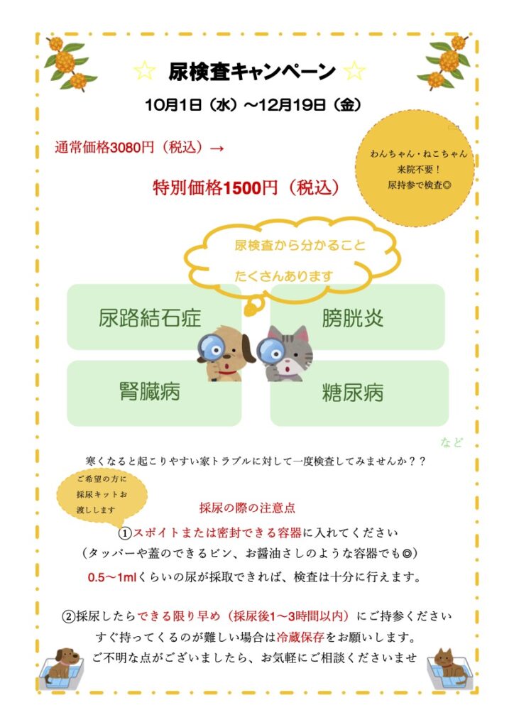 昨年ご好評いただきました超音波検査と寒くなると起こりやすい尿トラブルに対して知っていただく為に尿検査のキャンペーンを実施します。