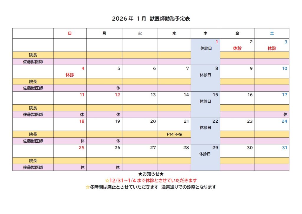 年明けは1月5日(日)からですのでよろしくお願いいたします。