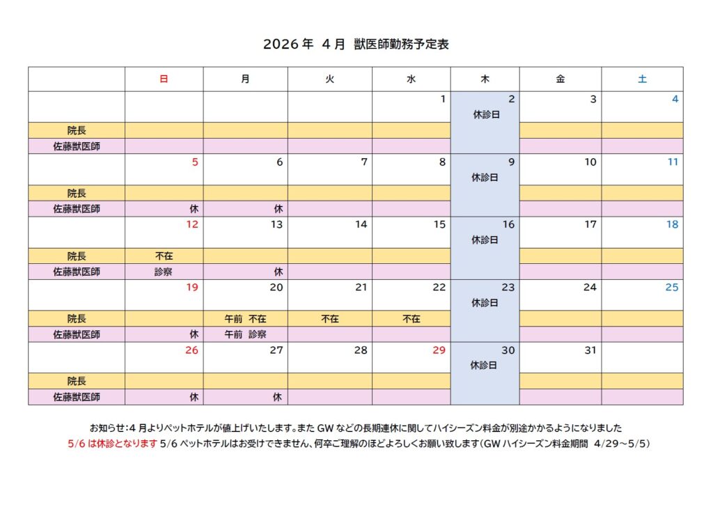 4月のお知らせ